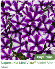 In 2025 I used Proven Winners Supertunia Vista Silverberry, Supertunia Vista Bubblegum, and some Verbena in the long border and featured Supertunia Tiarra Blue, Supertunia Mini Vista Indigo, and Supertunia Mini Vista Violet Star in the little island. These colors were great as well. Again, the Verbena struggled. I'm concluding that deer or rabbits are nibbling on the Verbena.