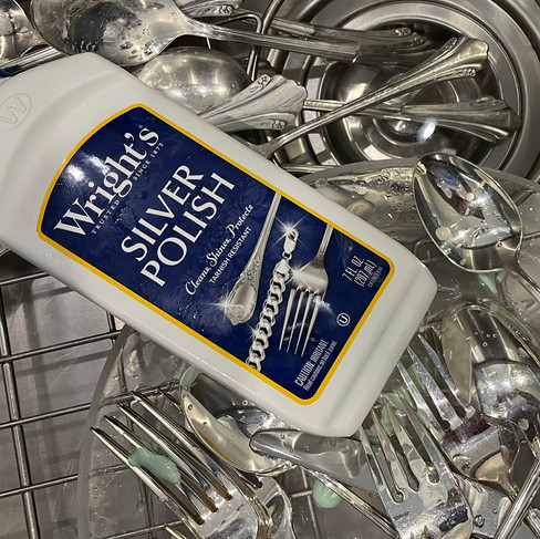 These ivory lace placemats are a nod to great-grandma's hand crocheted doilies. They're a pretty foundation for the dishes. I took time to polish my wedding silverware and iron the colorful cloth napkins. Polishing and ironing take a little effort but are worth the shiny and smooth results. Incorporating the sparkly leaves again, I used narrow ribbon to tie them around the napkins.